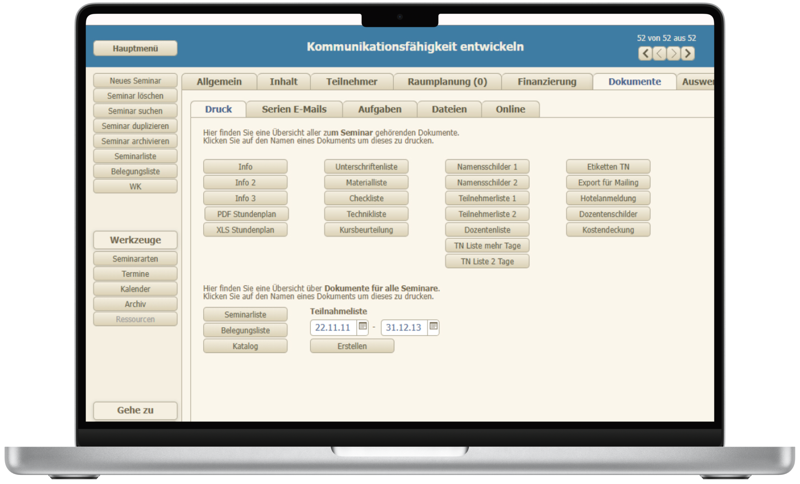 Zentrale Verwaltung aller Schulungen & Teilnehmerdaten